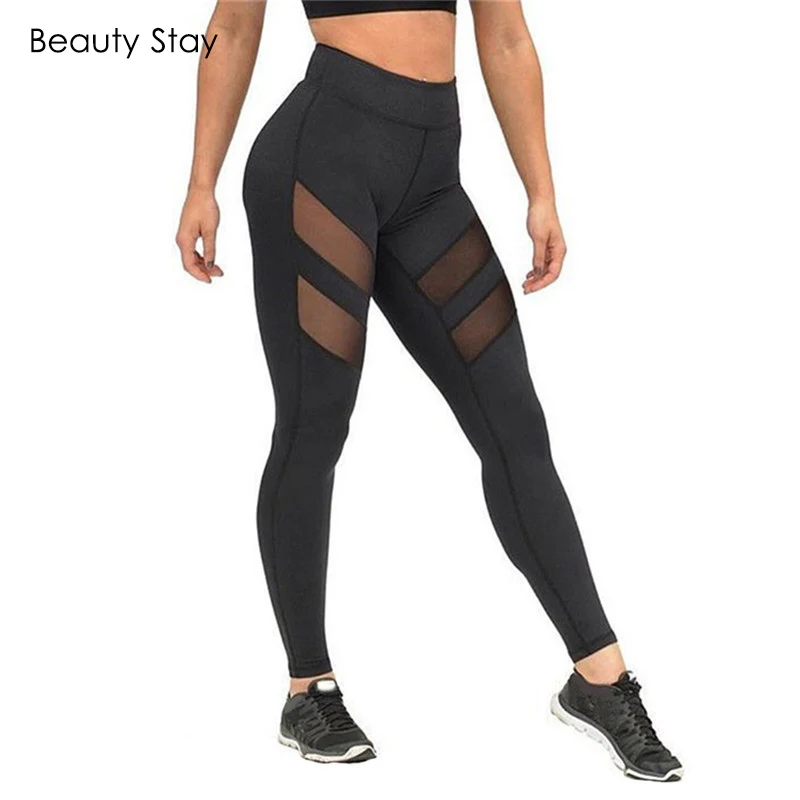 Beauty Stay Women Leggings Grenadine Sports Pants High Waist Push Up Breathable Casual Stitching Wo
